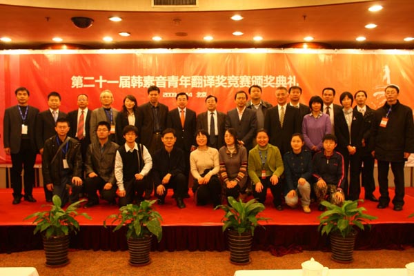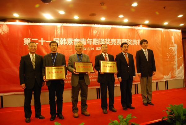 2009年11月14日,第二十一届韩素音青年翻译奖竞赛颁奖典礼在京举行。外文局副局长、中国译协副会长黄友义,常务副秘书长姜永刚,北大外国语学院院长陈朝翔,《中国翻译》副主编杨平等出席颁奖仪式并为获奖选手和最佳组织奖单位颁奖。