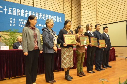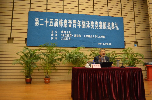 2013年10月25日,第25届韩素音青年翻译奖竞赛颁奖典礼在天津财经大学举行。中国外文局对外传播研究中心主任、中国译协常务理事姜加林,天津财经大学副校长张俊喜,中国译协会长助理黄长奇,天津外国语大学副校长陈法春,南开大学外国语学院教授崔永禄,天津财经大学人文学院首席教授王学成,天津师范大学外国语学院教授李运兴,天津大学文法学院院长李旭等出席了颁奖典礼,天津财经大学人文学院院长孙建成主持典礼。