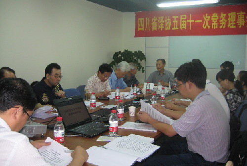 四川省译协五届十一次常务理事会2011年7月15日在成都召开。连真然副会长主持会议,四川省民政厅主管社团工作的郭加里主任、省科协学会部副部长李梅到会指导。