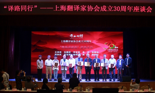 2016年5月19日下午,译路同行——上海翻译家协会成立30周年座谈会在上海文艺会堂举行。上海市文联党组书记、专职副主席宋妍,上海市文联党组成员、专职副主席沈文忠,中国翻译协会副会长、上海翻译家协会会长谭晶华等领导及上海翻译家协会会员、市文联兄弟单位负责人150余人参加了座谈会。座谈会由谭晶华主持。中国翻译协会常务理事、上海翻译家协会副会长张伊兴宣读了中国翻译协会的贺信。