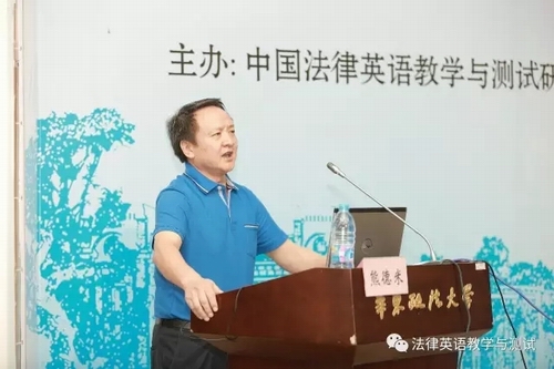 中国法律英语教学与测试研究会副会长、华东政法大学屈文生教授做了题为《法律英语教学需直面的若干问题》的主旨发言。屈教授以发问的方式展开论述,认为法律英语教学可以培养出从事语言服务业和法律服务业的两类人才,他们承担的职责各不相同,因此对于法律英语教学来说并不冲突,反而是一种互补关系。法律英语课程是基于企业与学生需求应运而生的,因为语言是法律服务从业者的基本工具,语言是律师的职业工具,全球化时代,使用外语更成为涉外律师的基本技能。屈教授认为,法律英语教师应该具备法学与英语双重素质,法学功底与外语功底均需十分扎实,法律英语教学要与实践结合,因材施教,针对不同背景和水平的学生确定设置课程的难度与方向。