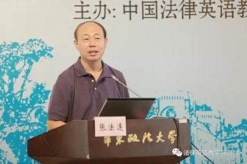 中国法律英语教学与测试研究会会长、中国政法大学张法连教授致开幕辞。张法连教授指出,法律外语是涉外法律服务工作不可或缺的工具,英语又是国际通用语,因此,法律英语的语言价值上升。随着“一带一路”建设的推进,法律英语已成为发展涉外法律服务业、培养高端涉外法律人才的重要保障,法律英语的春天已经到来。