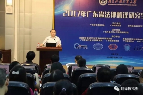 2017年7月2日,由广东省学位委员会、广东省教育厅和世界翻译教育联盟(WITTA)主办的2017年广东省法律翻译研究生暑期学校在广东外语外贸大学开幕。本次活动由广东外语外贸大学高级翻译学院承办,项目负责人为中国翻译协会法律委员会副主任、广东外语外贸大学高级翻译学院院长赵军峰教授。来自全国20余所高校的100名青年骨干教师和法律翻译相关专业研究生参加了本次暑期学校的学习。活动得到了全国翻译专业学位研究生教育指导委员会、教育部高校翻译专业教学协作组、广东外语外贸大学研究生院、广东省翻译协会、广州翻译协会以及Atril Solutions公司的大力协助。
