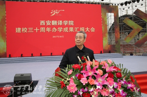 2017年10月29日,坐落于终南山下的西安翻译学院迎来建校三十周年华诞,来自社会各界的嘉宾、离退休教师、历届校友见证了学院建校三十周年的成果汇报大会。