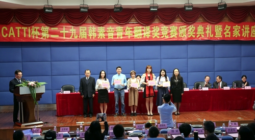 2017年11月19日,CATTI杯第二十九届韩素音青年翻译奖竞赛颁奖典礼在暨南大学举行。竞赛由中国翻译协会主办,暨南大学翻译学院和《中国翻译》杂志联合承办,中国外文局翻译专业资格考评中心协办。中国翻译协会会长周明伟、暨南大学副校长刘洁生出席颁奖典礼并致辞。《中国翻译》杂志嘉宾代表、全国翻译专业资格考试中心嘉宾代表、获奖选手代表、“最佳组织奖”院校代表、媒体记者、暨南大学师生等共约300人参加颁奖典礼。