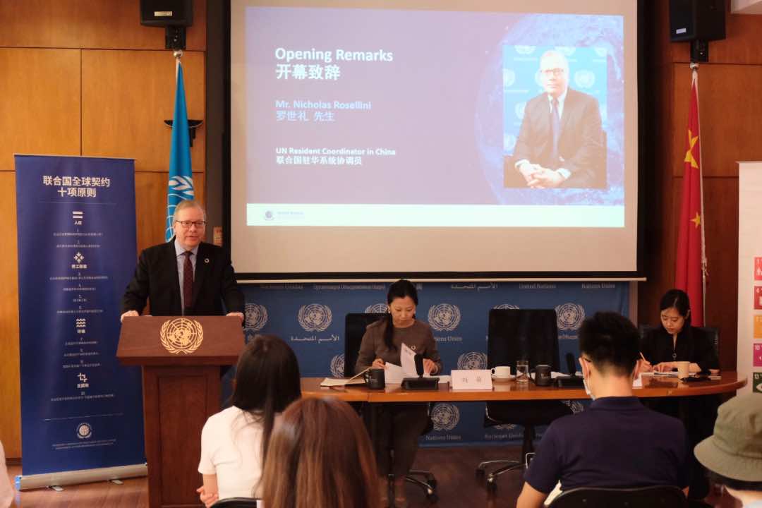 此次座谈会上,中译公司还派出中译培训优秀学员代表,为联合国驻华协调员Nicholas Rosellini(罗世礼)先生提供现场语言服务。
