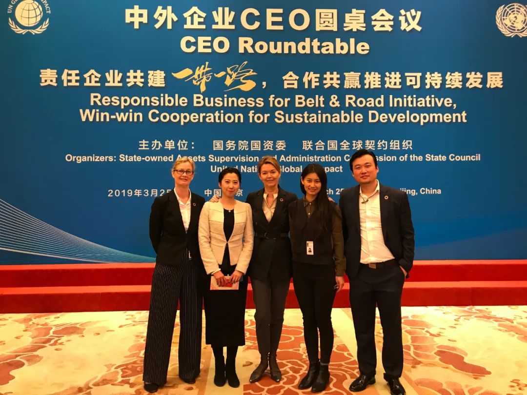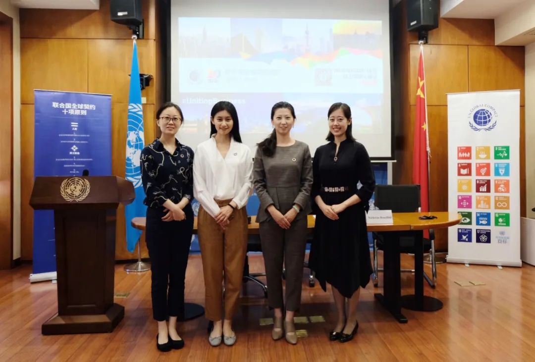 中译公司国际部主任金文茜一行与UNGC亚太区总代表刘萌女士(右二)在会议现场合影留念