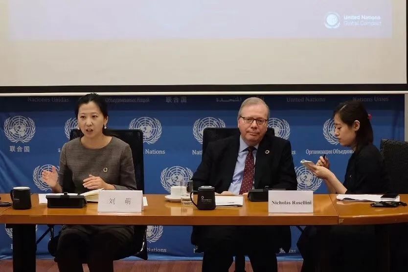 联合国全球契约组织总干事Lise Kingo女士(左三)、亚太区总代表刘萌女士(左二)出席会议