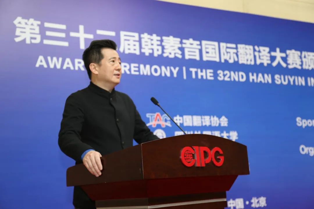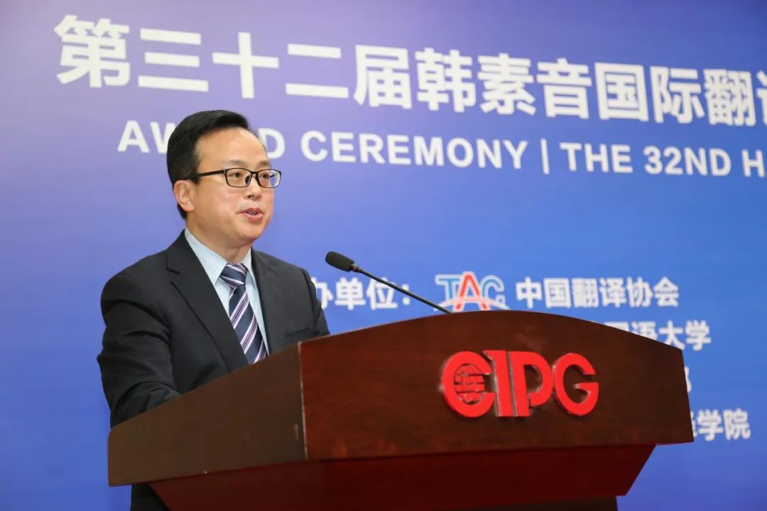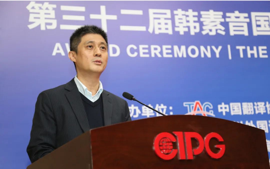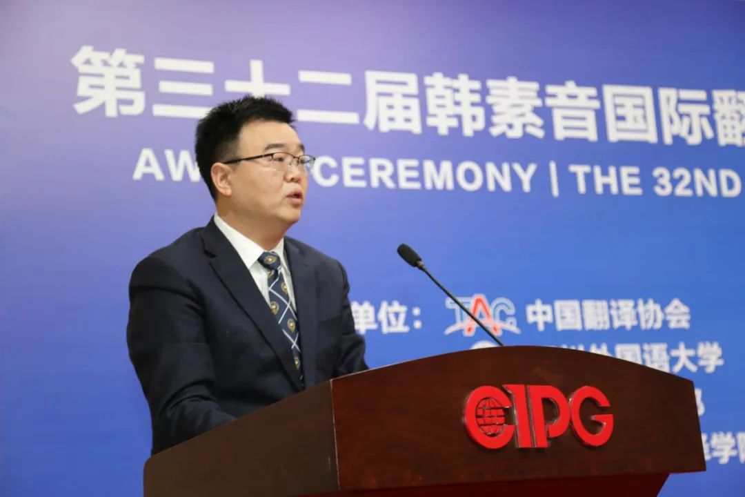 中国译协秘书处处长刘强为优秀奖获奖代表颁奖。