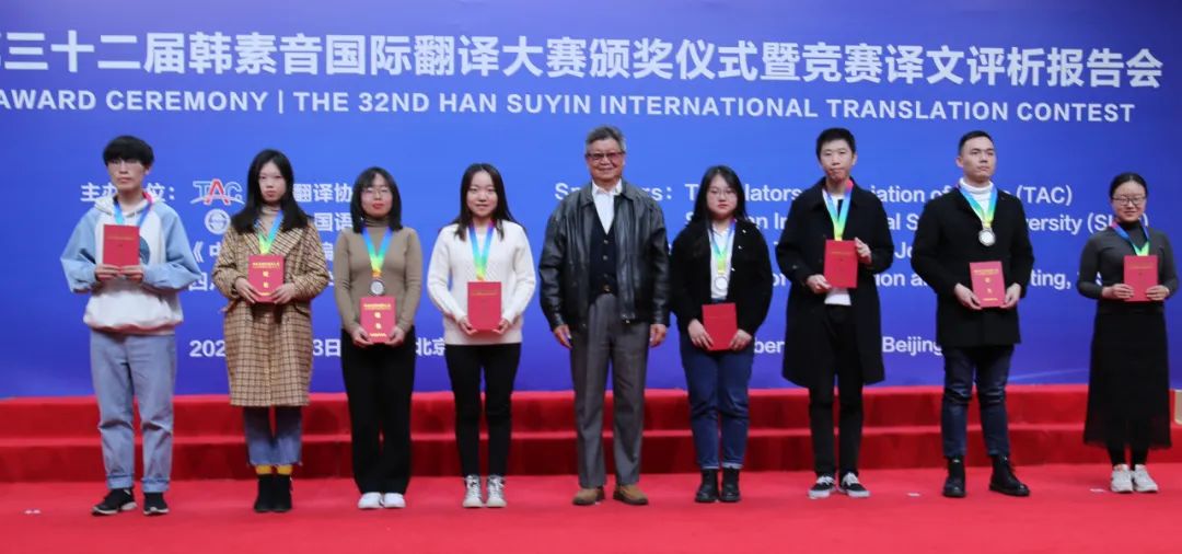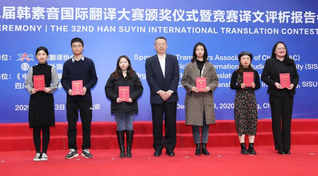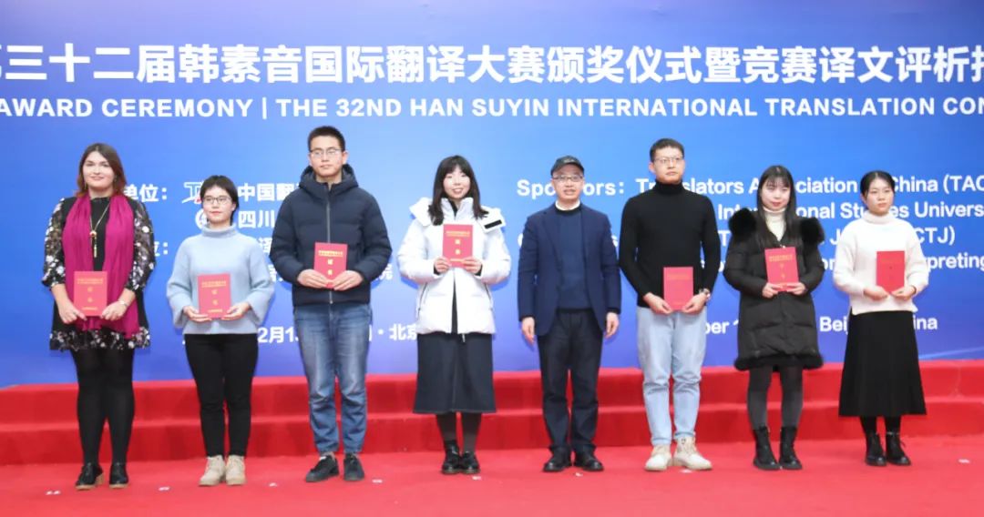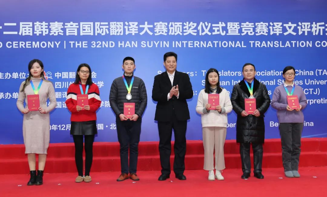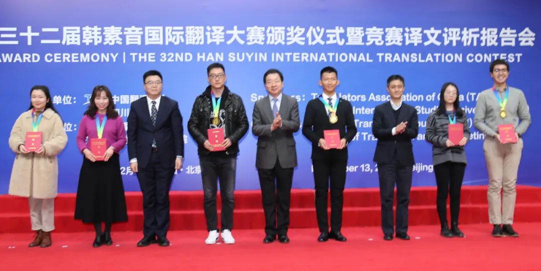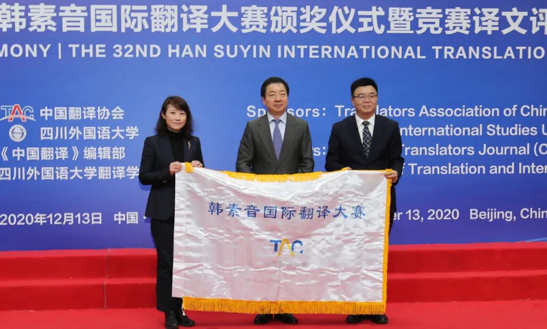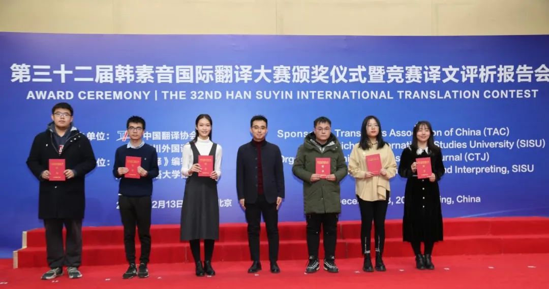 12月13日,第三十二届韩素音国际翻译大赛颁奖仪式暨竞赛译文评析报告会在北京举行。本届大赛由中国外文局所属中国翻译协会与四川外国语大学联合主办,《中国翻译》编辑部与四川外国语大学翻译学院联合承办。中国外文局副局长兼总编辑高岸明,中国翻译协会会长周明伟,中国译协顾问唐闻生、朱英璜、施燕华、赵常谦、郭晓勇,四川外国语大学校长董洪川等出席颁奖仪式。四川外国语大学副校长祝朝伟作大赛评审工作报告。来自全国各地的获奖选手代表、最佳组织奖获奖单位代表参加颁奖仪式。