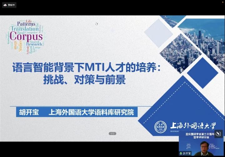 (图:上海外国语大学校长助理胡开宝作主旨报告)