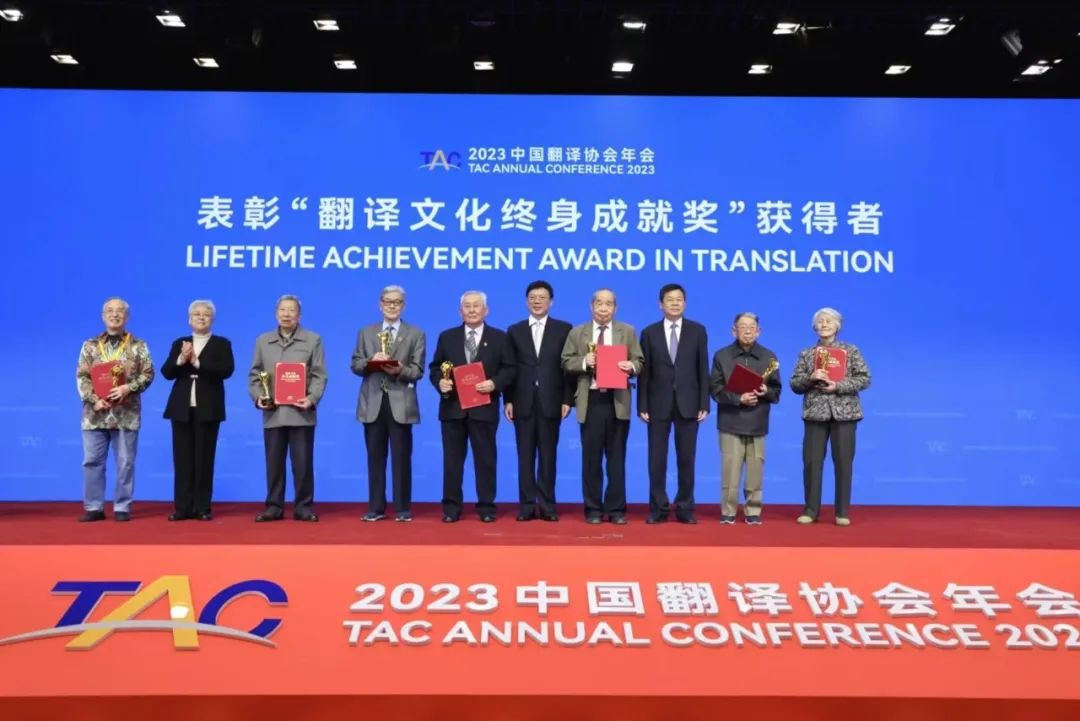“翻译文化终身成就奖”由中国翻译协会于2006年设立,授予在翻译与对外文化传播和文化交流方面作出杰出贡献、成就卓著、影响广泛、德高望重的翻译家,是中国翻译协会设立的表彰翻译家个人的最高荣誉奖项。该奖项旨在鼓励我国广大翻译工作者向老一辈翻译家学习,继承和发扬他们的敬业精神,提高自身业务素质,为繁荣我国翻译事业作出贡献。至今已有38位翻译家获此荣誉称号。2023年,姜桂华、王凤祥、黄宝生、李顺然、李均报、阿尔根拜洪尔、方梦之、何道宽、庄绎传、张道一、朱威烈等11位翻译家被授予“翻译文化终身成就奖”。