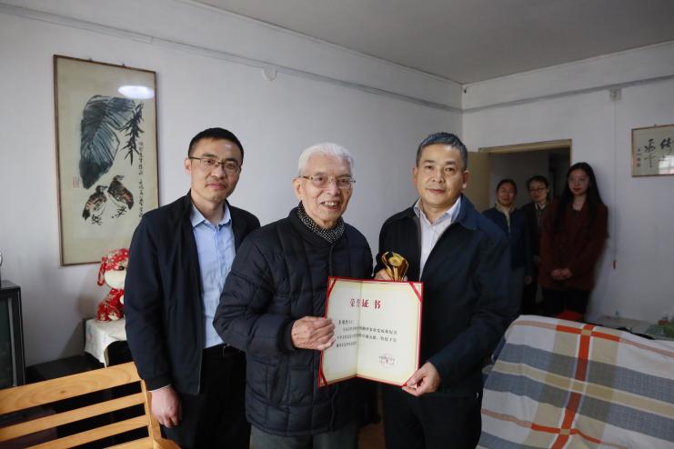 4月13日下午,中国翻译协会常务副会长、中央广播电视总台影视翻译制作中心主任王璐,中央广播电视总台离退休干部局局长牛道斌,中国外文局翻译院副院长李伟勇到2023年“翻译文化终身成就奖”获得者李顺然先生家中拜访。王璐和牛道斌共同向李顺然先生颁发“翻译文化终身成就奖”奖杯及证书。