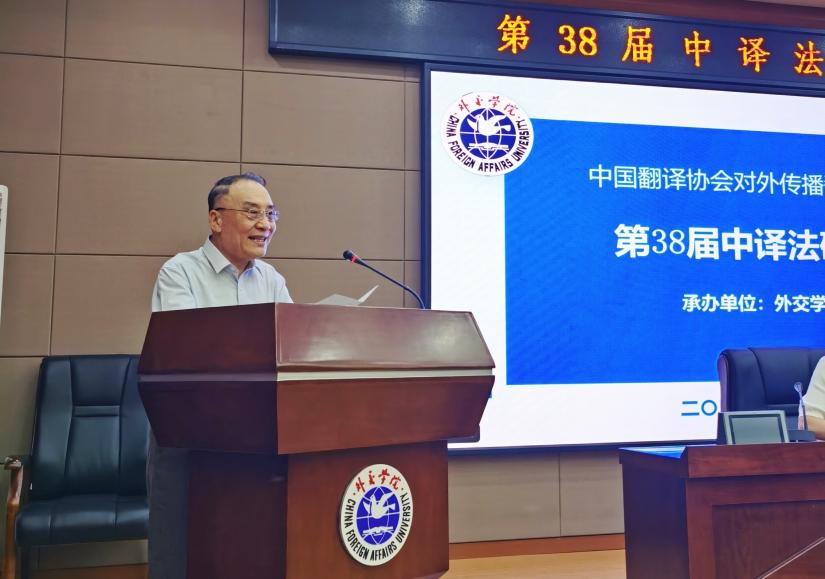 6月16日,由中国翻译协会对外传播翻译委员会主办、外交学院承办的第38届中译法研讨会在外交学院举办。来自外交部、中央党史和文献研究院、自然资源部、中国科学院、新华社、中央广播电视总台、人民日报社、经济日报社、外文出版社、中国网、中国外文局西欧与非洲传播中心、商务印书馆、外语教学与研究出版社、中国西藏网、北京外国语大学、外交学院、北京语言大学、上海对外经贸大学等单位的50余位中外专家参加会议。