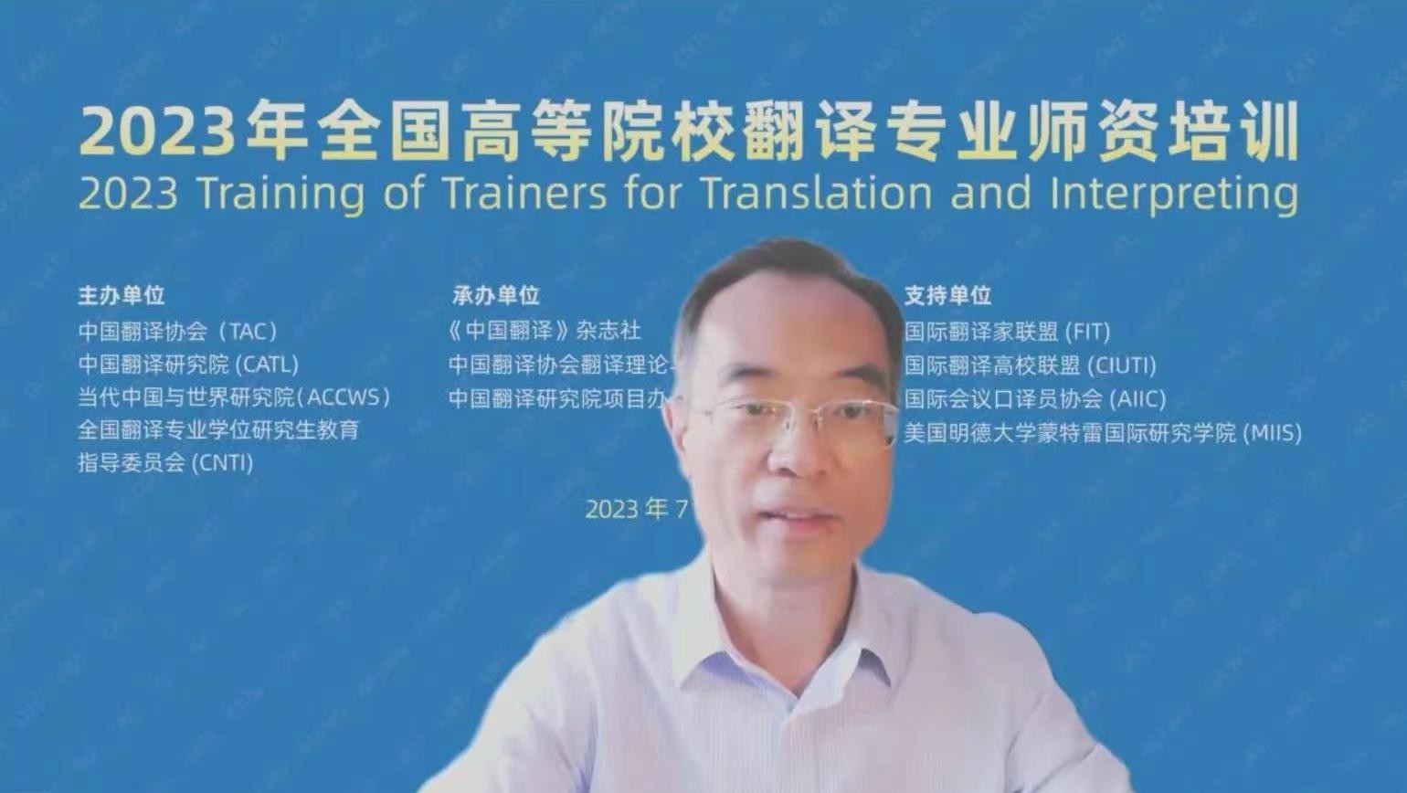 7月15日,由中国翻译协会、中国翻译研究院、当代中国与世界研究院、全国翻译专业学位研究生教育指导委员会联合主办,《中国翻译》杂志社、中国译协翻译理论与翻译教学委员会、中国翻译研究院项目办公室联合承办的2023年全国高等院校翻译专业师资培训在线上开幕。中国外文局副局长兼总编辑、中国翻译协会常务副会长兼秘书长高岸明,中国翻译协会常务副会长、中国翻译研究院副院长、全国翻译专业学位研究生教育指导委员会学术委员会主任黄友义,全国翻译专业学位研究生教育指导委员会副主任委员、广东外语外贸大学高级翻译学院教授赵军峰等出席开幕式。中国外文局当代中国与世界研究院副院长孙敬鑫主持开幕式。