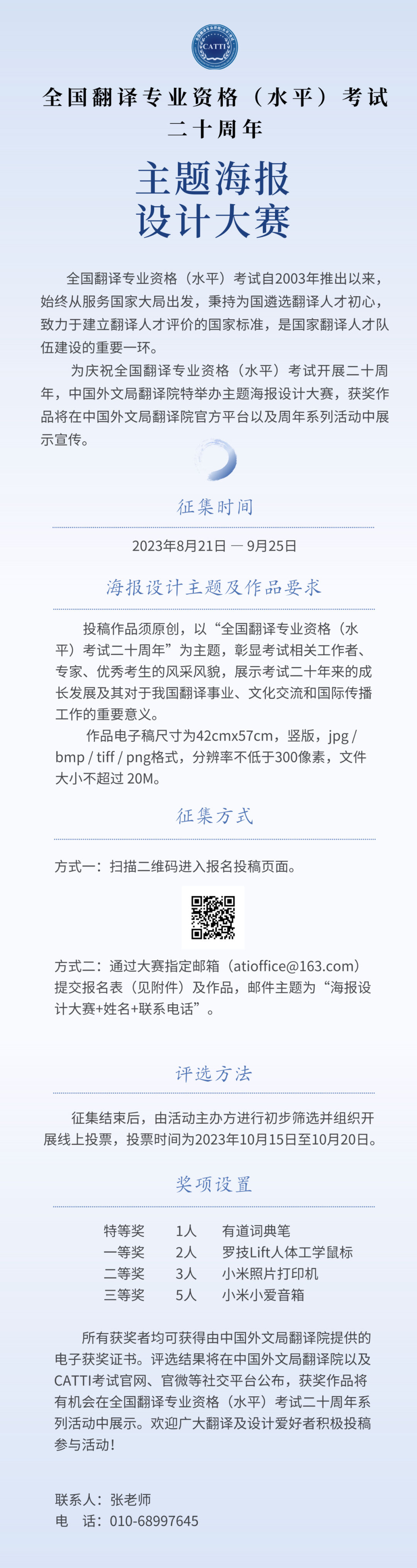全国翻译专业资格 (水平) 考试二十周年主题海报设计大赛