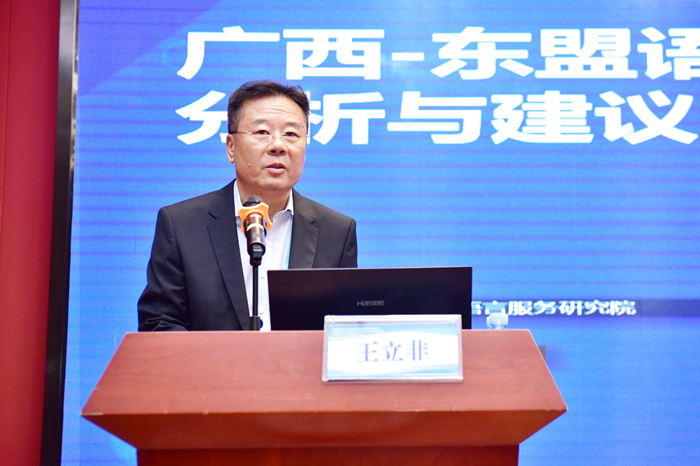 王立非作“广西—东盟语言服务现状分析与建议”报告,指出应大力发展东盟语言服务产业,打造东盟语言服务人才培养高地和提升广西区域应急语言服务能力水平。