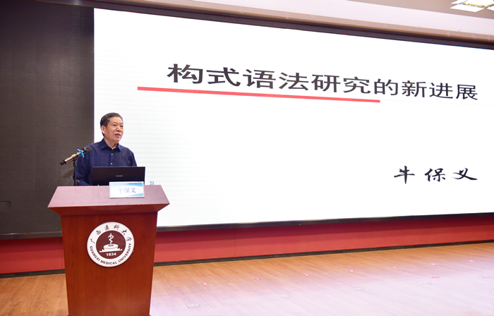 河南大学教授牛保义作“构式语法研究的新进展”发言,指出构式语法研究的“四个共识”和“四个创新”,并提出“四点商榷”和未来构式语法研究的“四个增长点”。