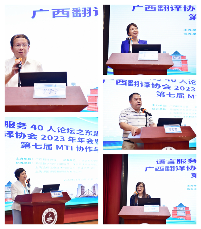 11月10日至12日,由广西翻译协会主办、广西医科大学外国语学院承办的语言服务40人论坛之东盟语言服务专题论坛、广西翻译协会2023年年会暨外语专业研究生论坛、第七届MTI协作与教学研讨会在广西南宁召开。来自广西区内外学术协会、高等院校、科研机构及翻译服务企业的近300人参会。