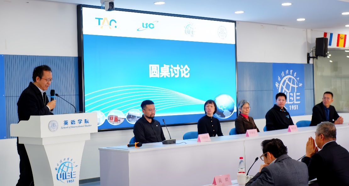 “企业讨论”环节由对外经济贸易大学英语学院教授崔启亮先生主持,邀请了外文出版社英文专家黄长奇女士、华为技术有限公司翻译中心业务规划负责人李晓春女士、北京莱博智环球科技有限公司总经理王华伟先生、字节跳动产品本地化负责人葛仲君先生、RWS大客户经理刘晓诚先生参与讨论。专家们充分结合自身经验,围绕本地化行业发展推动企业出海、助力AIGC时代翻译人才培养展开话题,为台下观众带来一场思想交流的盛宴。