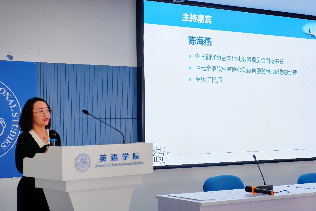 项洁女士代表承办方致辞,对与会嘉宾表示热烈欢迎。她表示,本次会议的召开对于推动本地化行业发展和全球化人才培养具有重要意义,并向大家介绍了对外经济贸易大学英语学院在翻译专业教育和人才培养方面的努力和成果,希望能够以本次会议为契机,与各位专家进行深入交流和研讨,加强校企合作,为我国翻译和本地化行业发展做出新贡献。