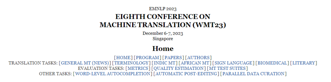 12月6日至7日,第八届国际机器翻译大会(WMT 2023)在新加坡举办,公布了2023年国际机器翻译大赛8个语对的比赛结果。中国多家企业榜上有名。