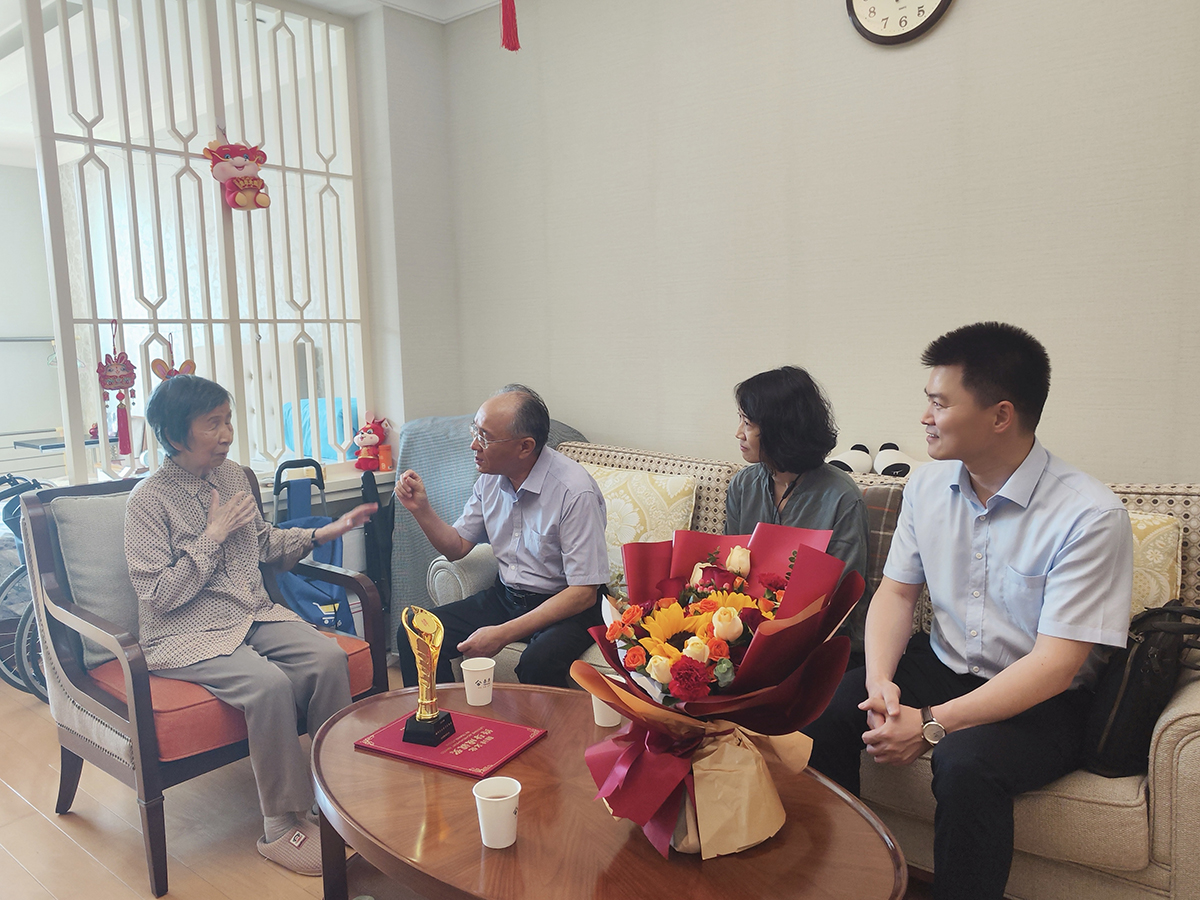 6月3日上午,中国翻译协会常务副会长、中国外文局原副局长王刚毅,中国翻译协会副会长、北京第二外国语学院党委常委、副校长程维到2024年“翻译文化终身成就奖”获得者苏琦家中拜访,共同为因故缺席颁奖仪式的苏琦教授颁发“翻译文化终身成就奖”奖杯及证书。北二外日语学院院长杨玲,北二外离退休处处长白岩、人事处副处长刘迪、人事处刘帅,中国翻译协会常务副秘书长、中国外文局翻译院副院长邢玉堂,中国翻译协会秘书处宋耔萱等有关同志参加。