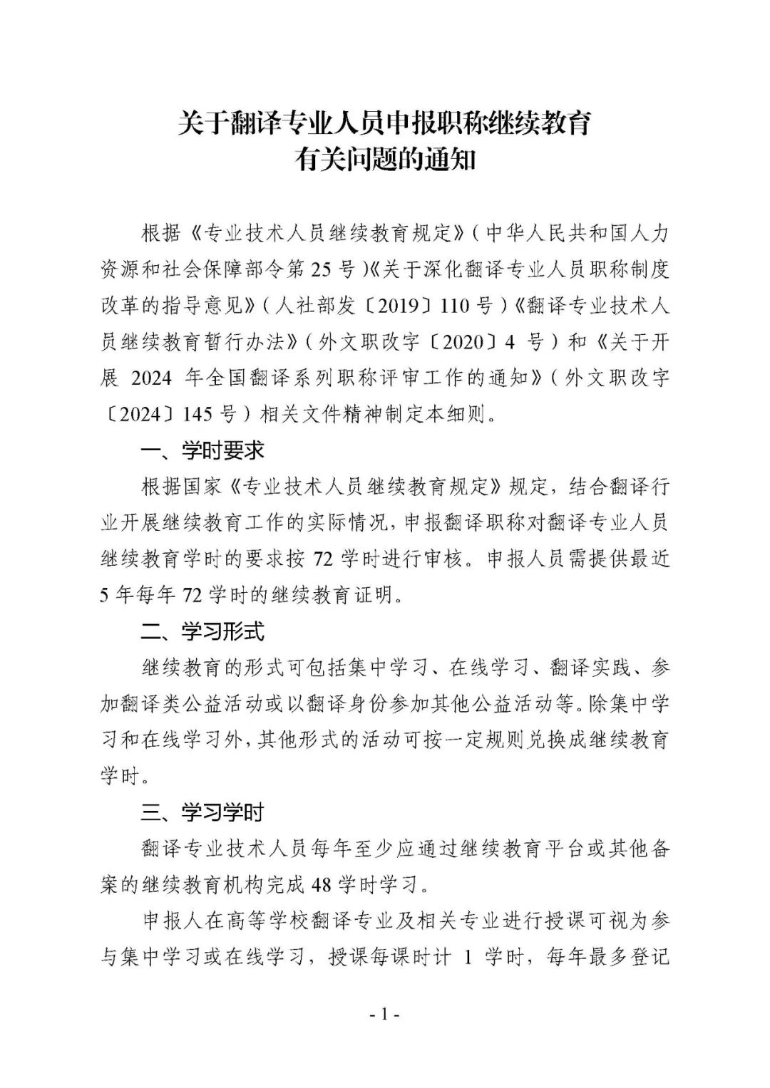 关于翻译专业人员申报职称继续教育有关问题的通知