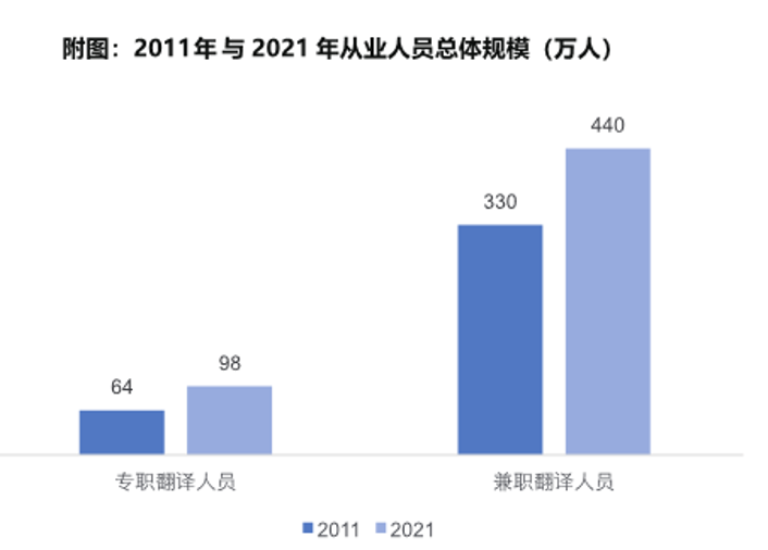 《2022中国翻译人才发展报告》对翻译人才队伍的现状、特征、问题和趋势等因素进行调研分析。报告指出,当前我国翻译服务人员已达538万,翻译服务机构企业专职翻译人员约为98万,翻译人才队伍增长幅度较大,呈现“年轻化”“高知化”“梯队化”等特征。报告发现,高素质、专业化中译外人才以及非通用语种翻译人才依然匮乏,翻译专业教育人才存在流失现象。