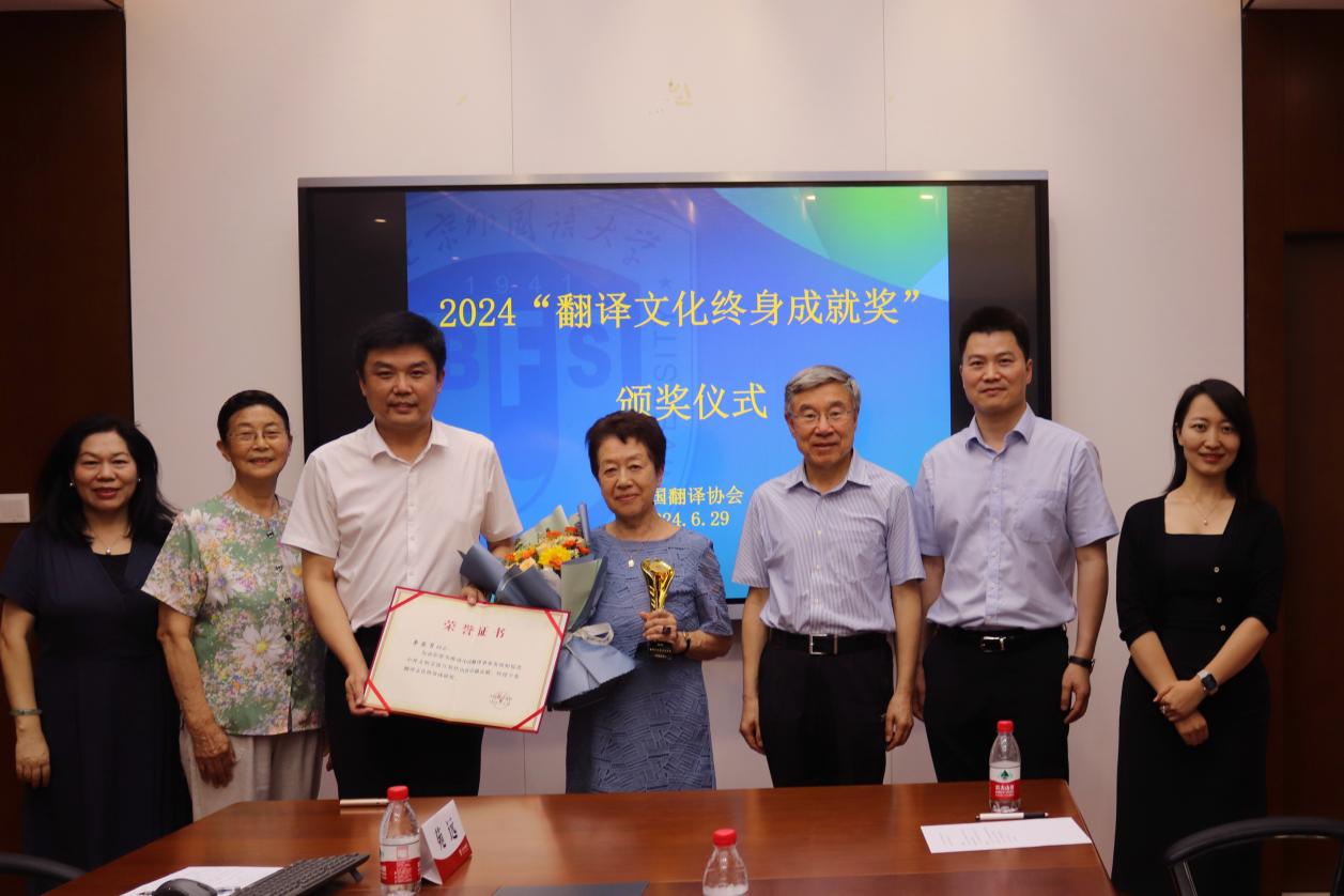 中国翻译协会领导为2024年“翻译文化终身成就奖”获得者李英男颁奖