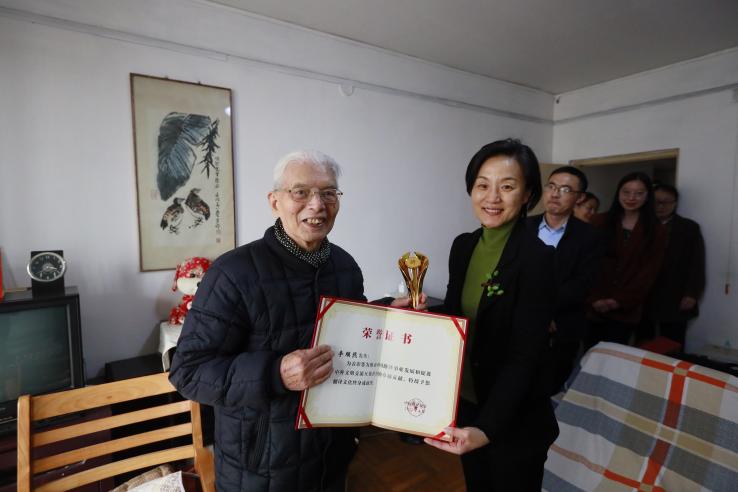 中国翻译协会领导向“翻译文化终身成就奖”获得者李顺然颁奖